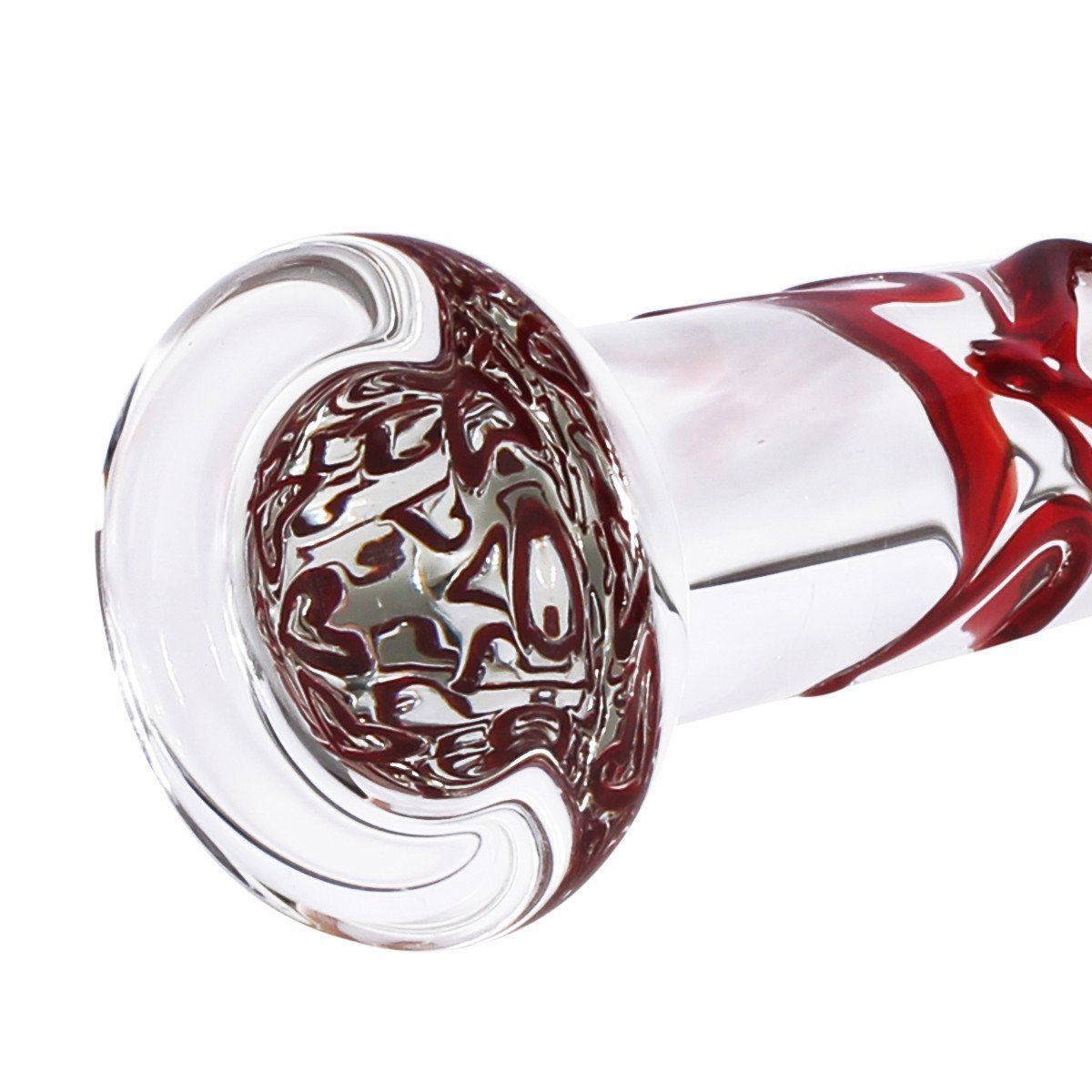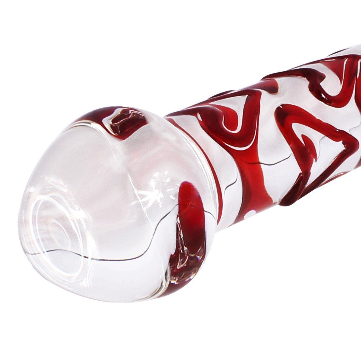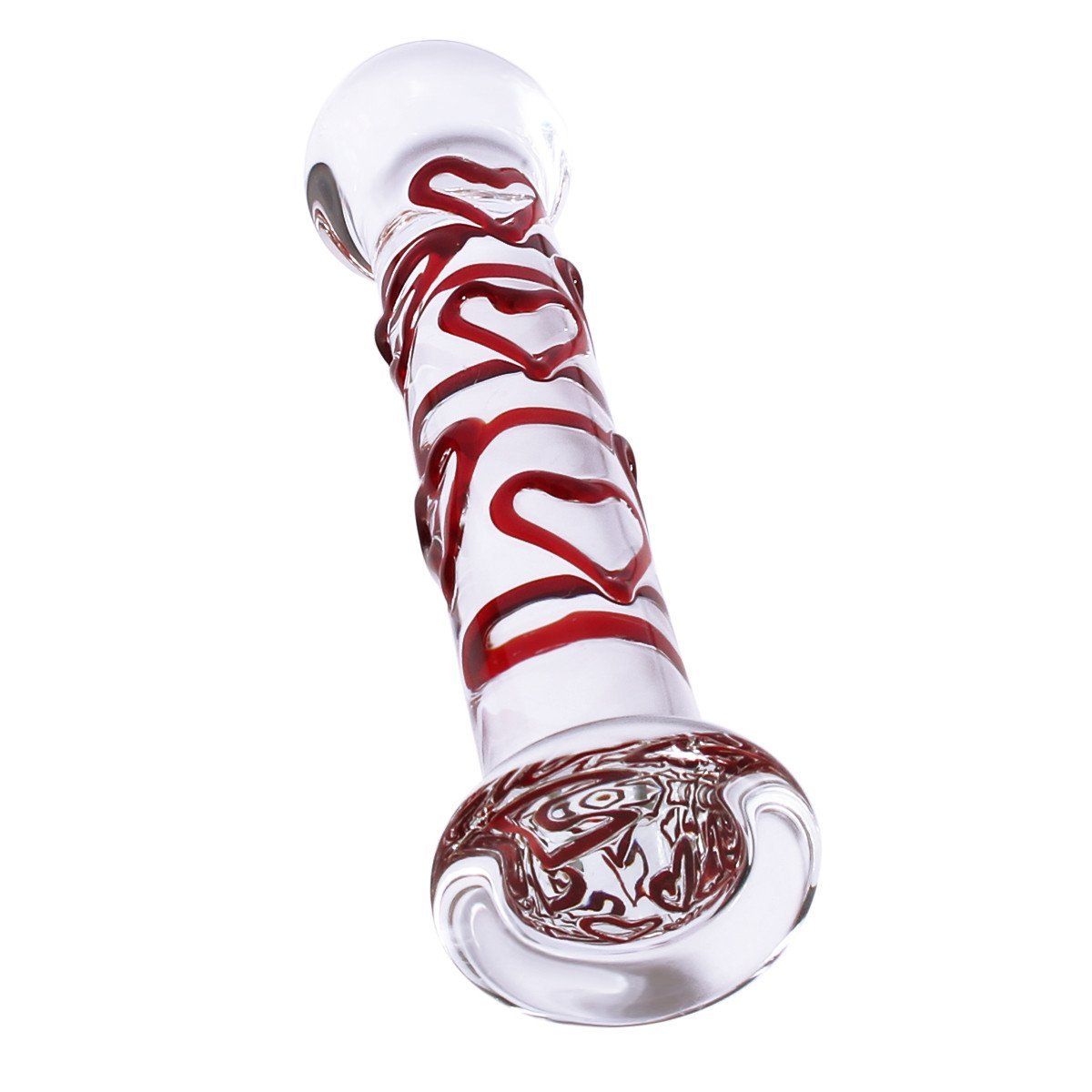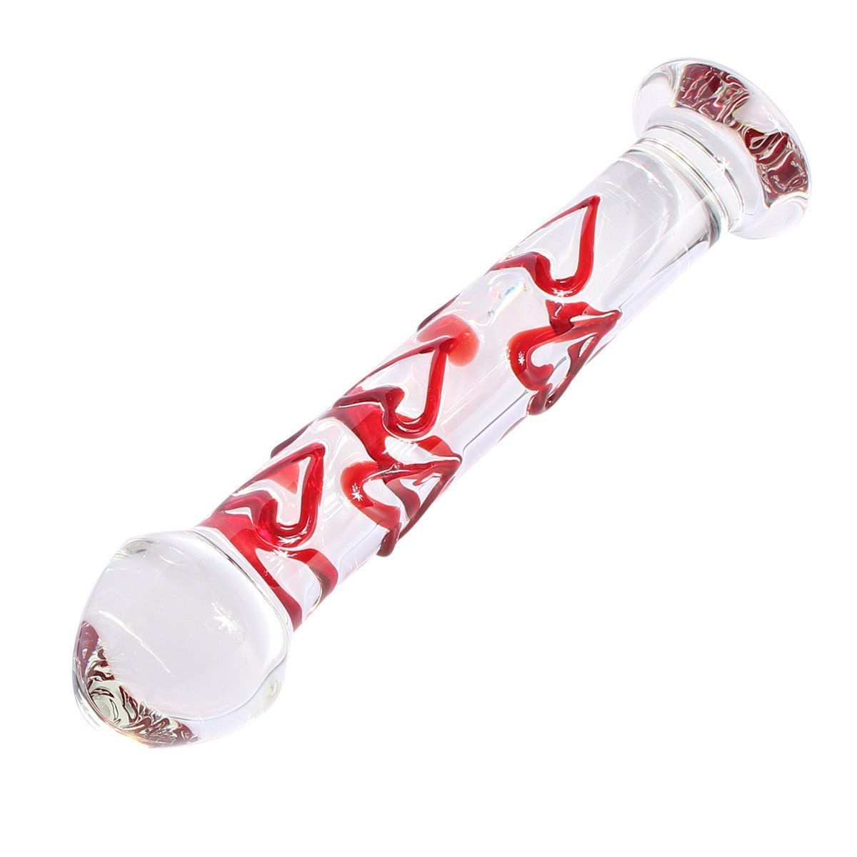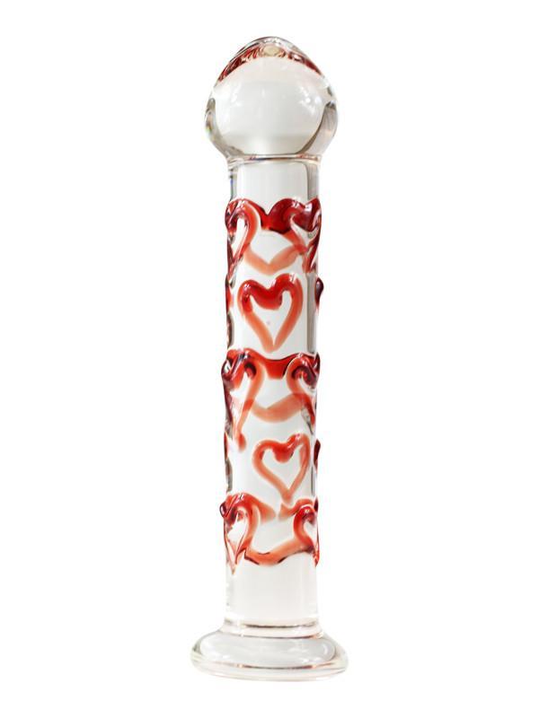 Posee un adorable patrón de corazones y lazos rojos alrededor de su cuerpo, terminando en un gran glande, capaz de tornar realidad tus sueños más húmedos. Este dildo de vidrio es capaz de estimular tu punto G de forma única. Úsalo como juguete anal o vaginal.