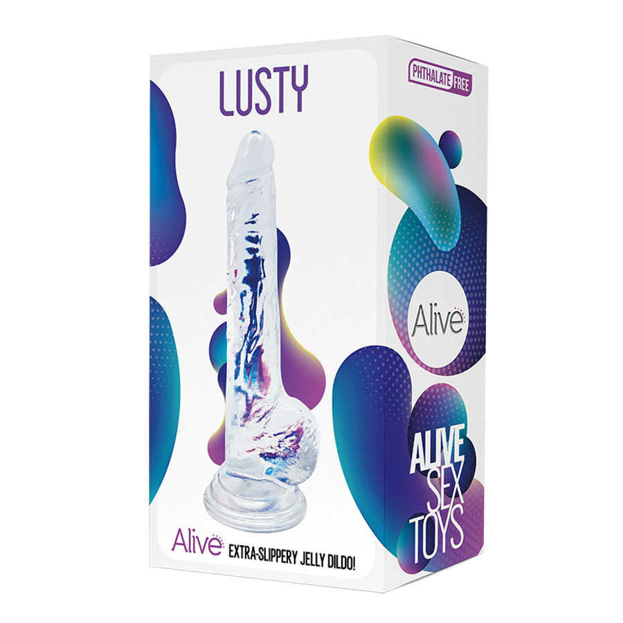 Dildo realista de cuerpo delgado, suave y flexible con testículos realistas y ventosa para adherirse a superficies planas.