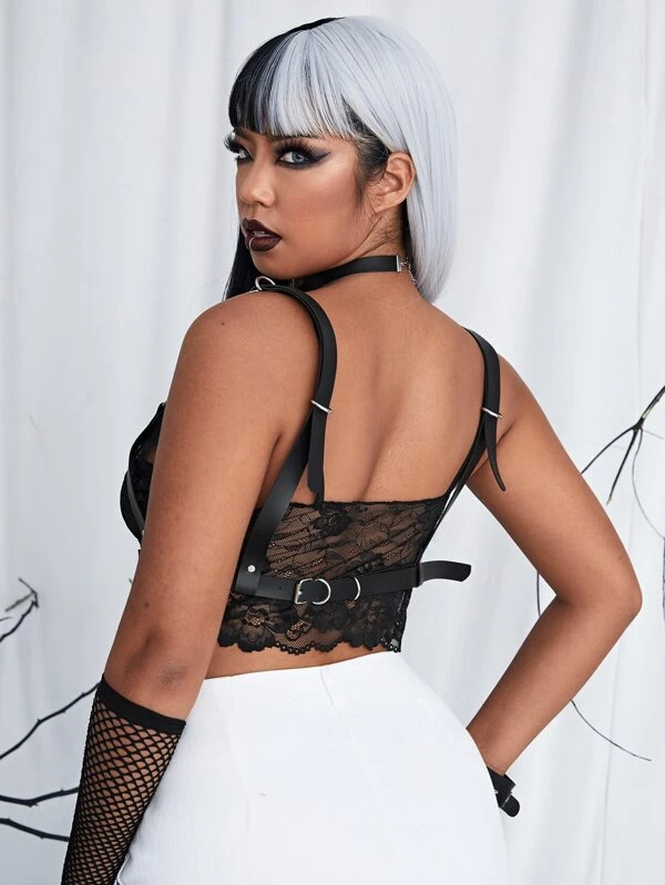 Arnés muy cool con onda gótica con correas gruesas y ajustables, perfecto para usar con ropa exterior.
